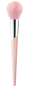 Another makeup tool that came with this launch! With the release of the concealer, it only made sense for there to be a brush that went with it. With the same soft pink and silver design of all the other brushes, 180 joins the Fenty family. Sephora.com describes this brush as follows: “these super-soft, synthetic bristles are custom cut at an angle to pick up and pack on the coverage you need with spot-on precision. The rounded design hugs the under-eye area and around the nose, making it perfect for applying and setting concealer, as well as blending foundation in hard to reach areas.” It sounds like the perfect tool! I find it hard to blend concealer with my BeautyBlender because my undereyes are sensitive, so I’m interested in this product for sure. You can find this awesome brush for $26 at Sephora.com right here!